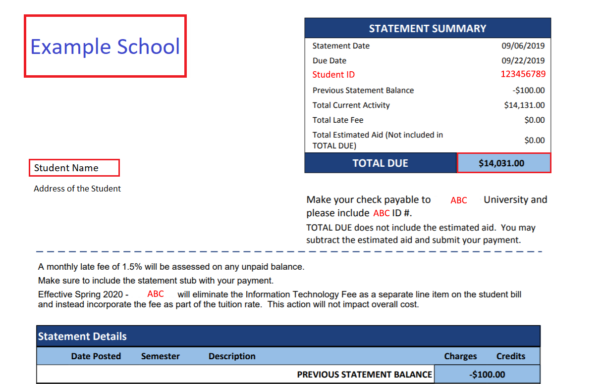 - Payment amount: The exact amount of the tuition, deposit, or bill you are paying.
