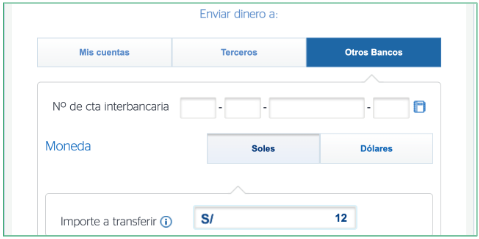 To complete your payment in Peruvian Soles (PEN), you will need to initiate a local interbank transfer ("transferencia interbancaria local") via your online banking platform or at your local branch.