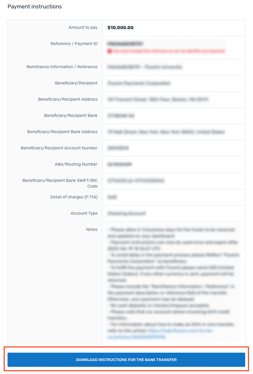 Download your document: Once your request is created, download your unique Payment Instructions from the tracking page. You will copy these exact details into the beneficiary section of your Form A.