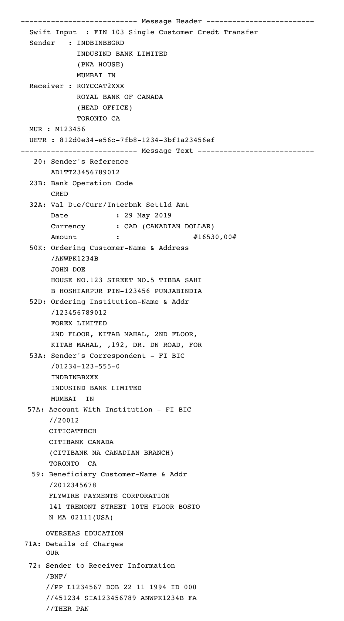 - Mẫu chứng từ xác nhận SWIFT MT103