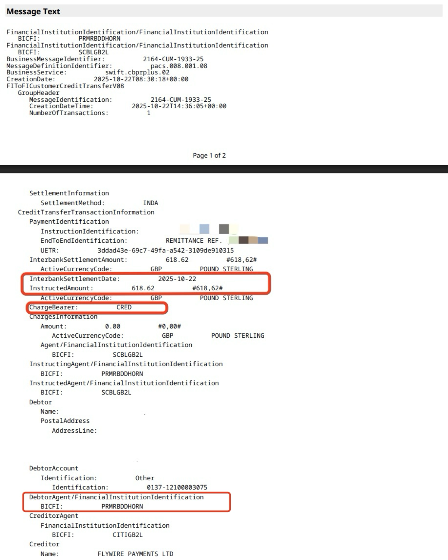 Các ngân hàng đang chuyển đổi từ định dạng MT103 truyền thống sang định dạng PACS008 mới (ISO 20022). Thay đổi trên toàn cầu này sẽ chính thức có hiệu lực trước tháng 11 năm 2025, mặc dù một số ngân hàng có thể đã bắt đầu sử dụng PACS008 sớm hơn. Cả hai định dạng này đều hợp lệ và được chấp nhận làm bằng chứng cho giao dịch chuyển khoản ngân hàng quốc tế của bạn.